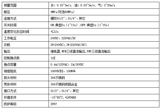 5、流量調(diào)節(jié)過(guò)高,低流量時(shí)無(wú)法帶動(dòng)流向片,開(kāi)關(guān)無(wú)法動(dòng)作。流量調(diào)節(jié)過(guò)低,開(kāi)關(guān)過(guò)于靈敏,產(chǎn)生誤動(dòng)作。 流量開(kāi)關(guān)技術(shù)參數(shù):